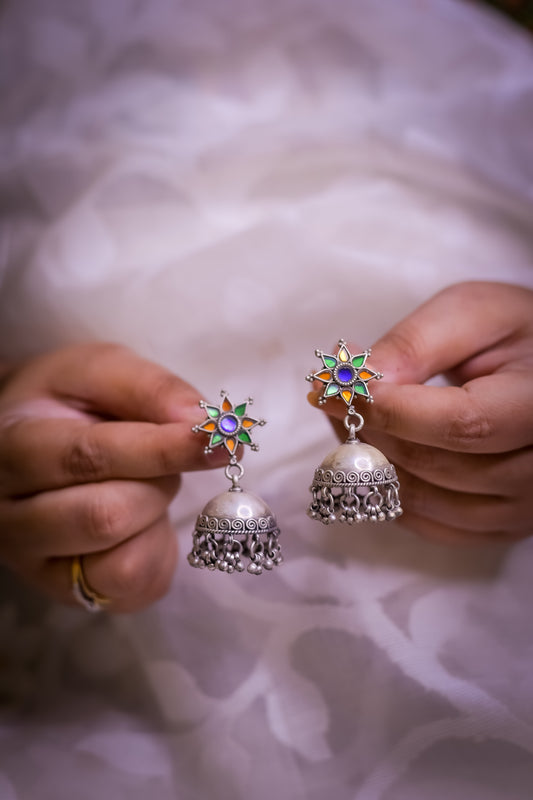 Suhani : Handpainted Silver blooms delicate, elegant earrings inspired by nature's beauty.