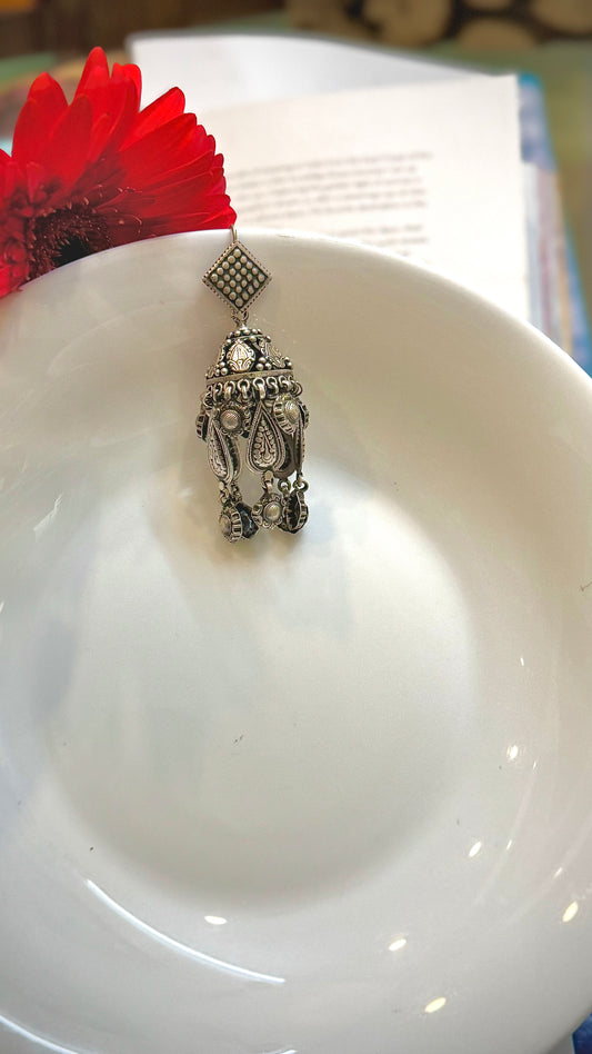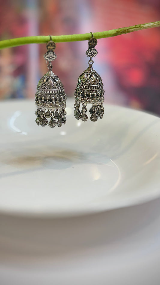 “Yuvika” - Radiate elegance with these intricately designed silver jhumkas
