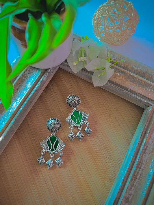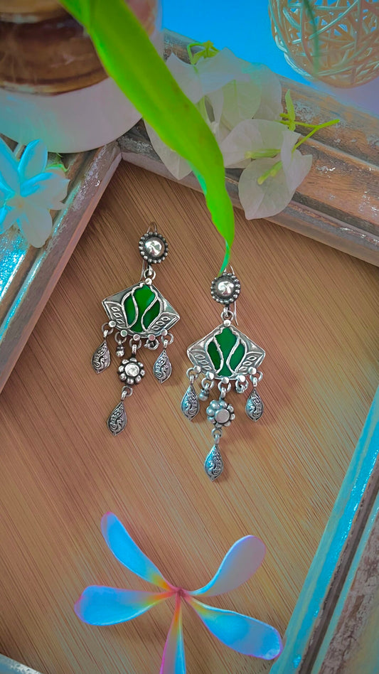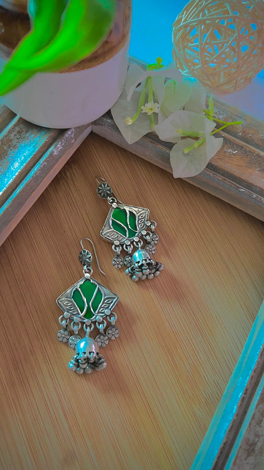 "Kamya": Timeless Pastel Green hand-painted earrings with candid silver crafted studs