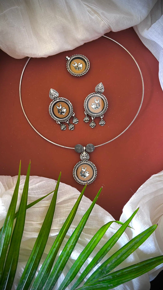 "Hansini हँसिनी "-Exquisite swan-patterned silver earrings, handcrafted with intricate Patra work (GA01)