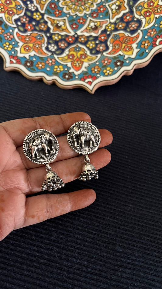 "Hathi Jhumka" :Unleash your inner fashionista with these meticulously designed pure silver Hathi earrings.