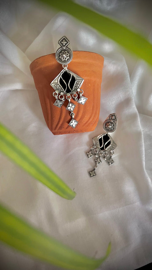 "Kalbeliya Knots": Each silver curve tells a story, as these vintage earrings capture the essence of a glamorous era.