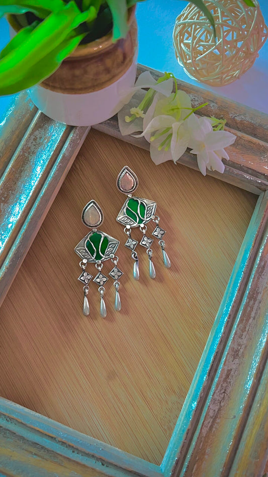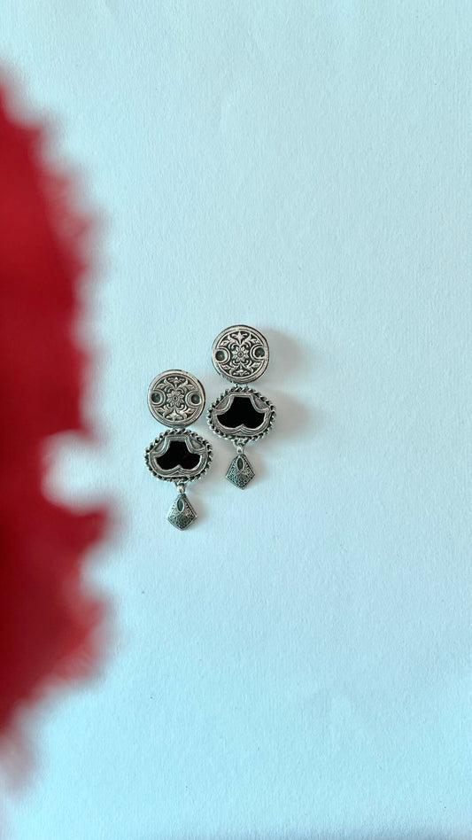 "Pankha"- (Black) Vintage elegance meets modern chic in our Pankha-inspired silver earrings.