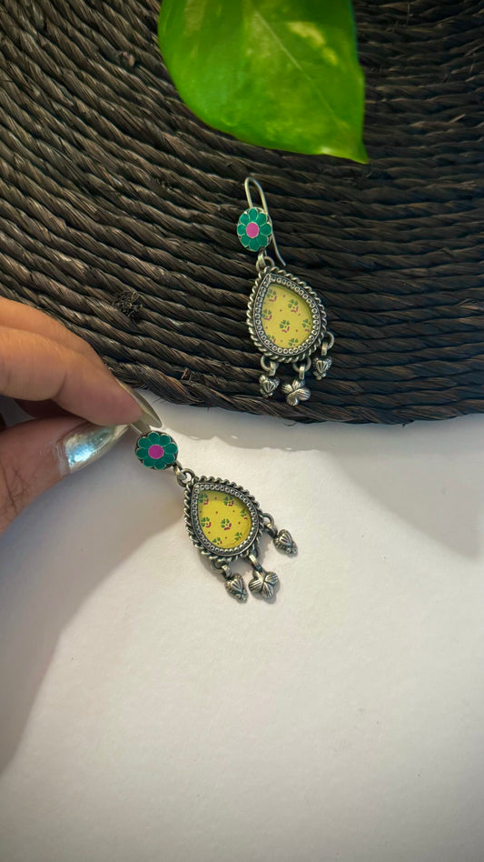 FIROZA "Munshi" : Pretty Firozi Hand-Painted Earrings with Quirky Stud