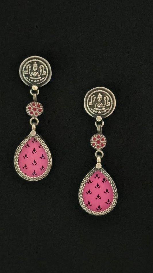 Bird-of-Paradise : Glamorous Pink handcrafted with Interesting Silver hangings