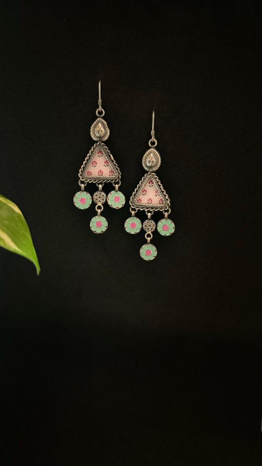 Aabir : Glamorous Hand-Painted Sea Green earrings with Floral hangings