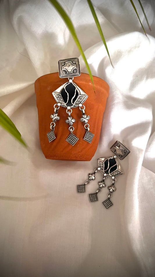 "Dhriti": Exotic and Exquisite dull orange earrings with striking versatile silver crafted hangings