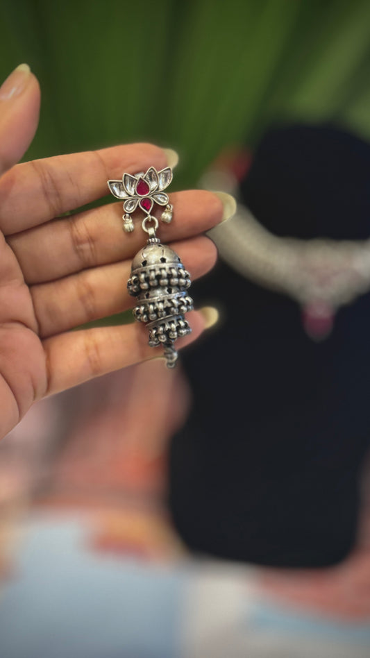 Kamal Kundan Jhumka : Timeless Fusion of Kundan and Pure silver.
