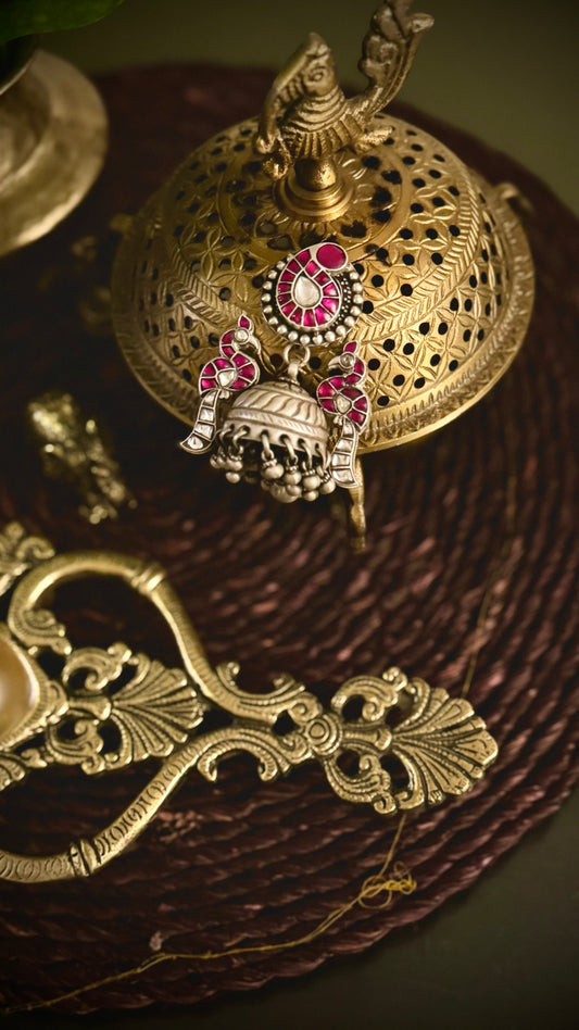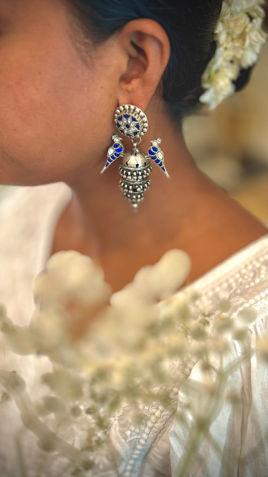 (Made to order) “Pakshi Moh” : Royal Elegance with these Bird-inspired jhumkas.
