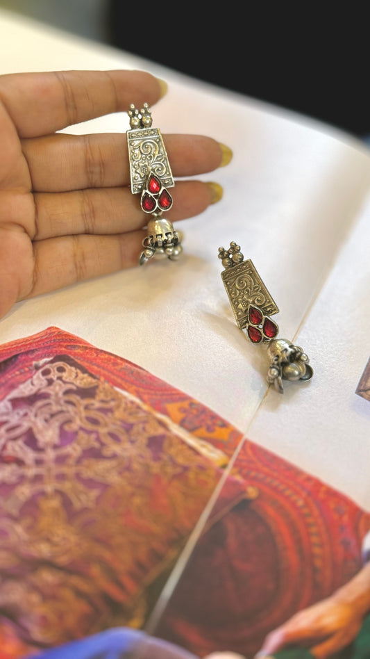 Whispers of Heritage: Adorn with Silver Jhumkas.