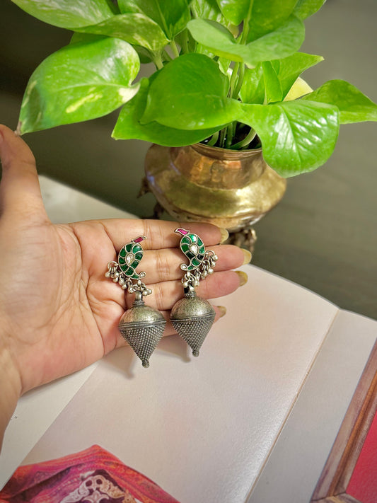 (MADE TO ORDER) “Mayura Raga” : Celebrate heritage and grace with these traditional peacock jhumkas.