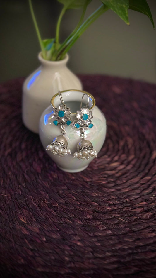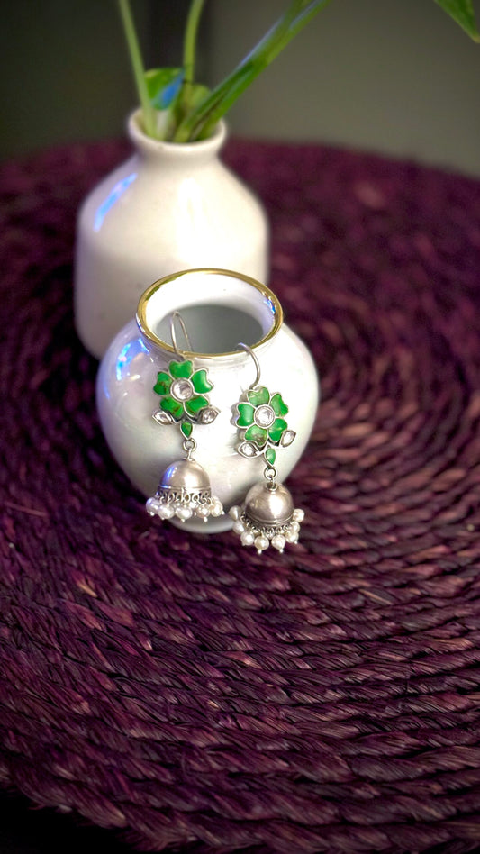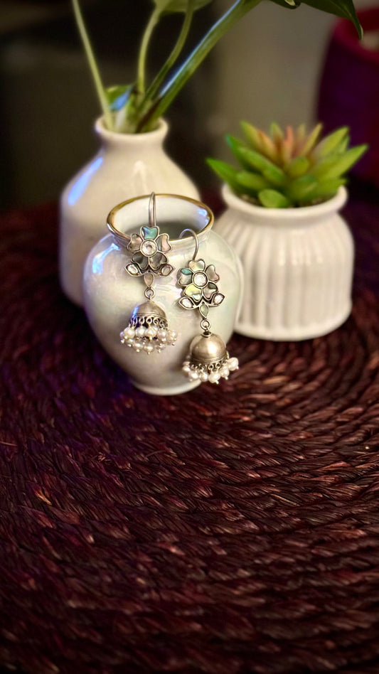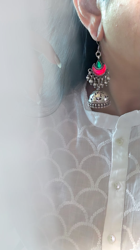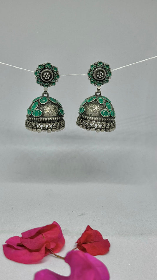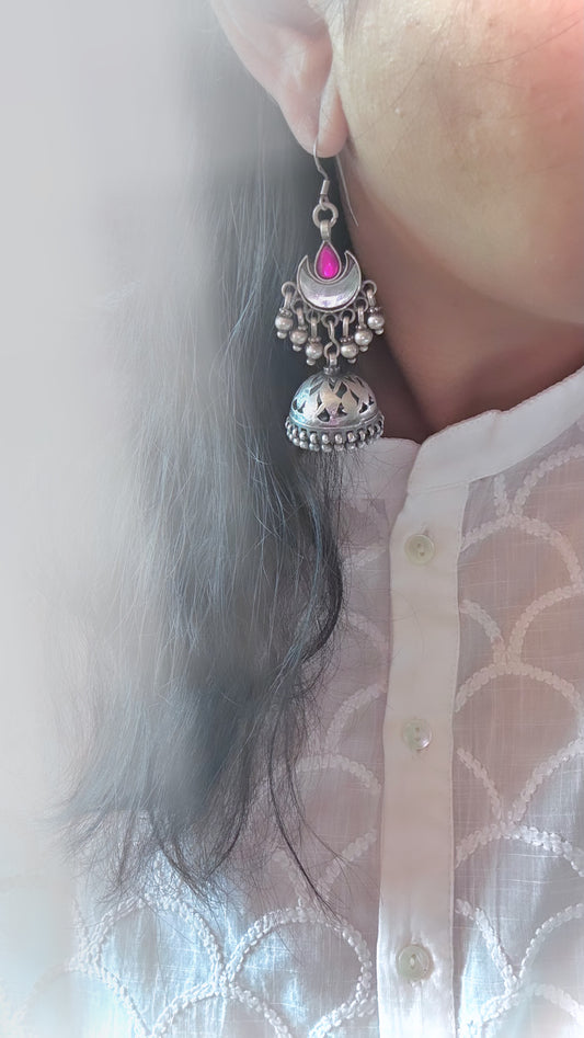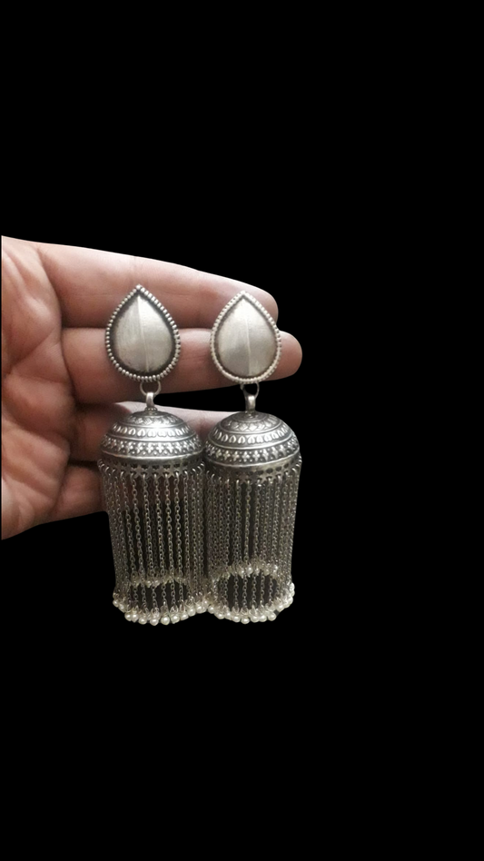 "Sundar Saanjh" : Experience the magic of these pure silver jhumkis, adorned with handcrafted silver hangings