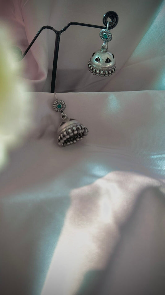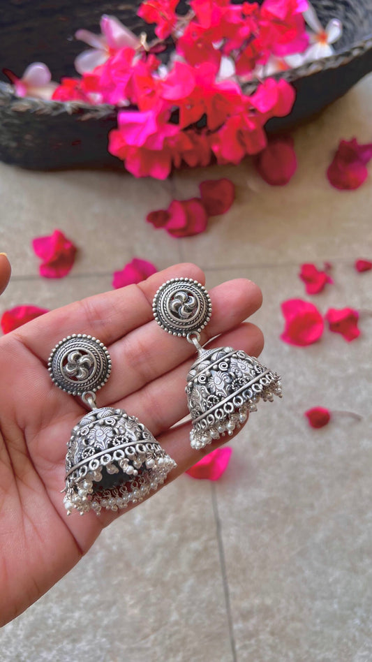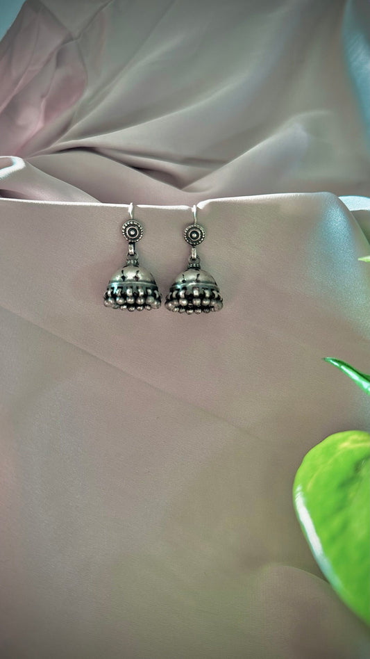 "Shubharambh" :Veda: Timeless Elegance: South Indian Silver Jhumkas with Delicate Artistry