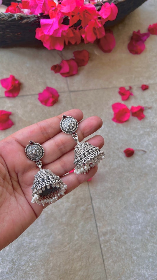 "Shubharambh" :Radhika: From the Heart of South India: Silver Jhumkas, a Testament to Craftsmanship
