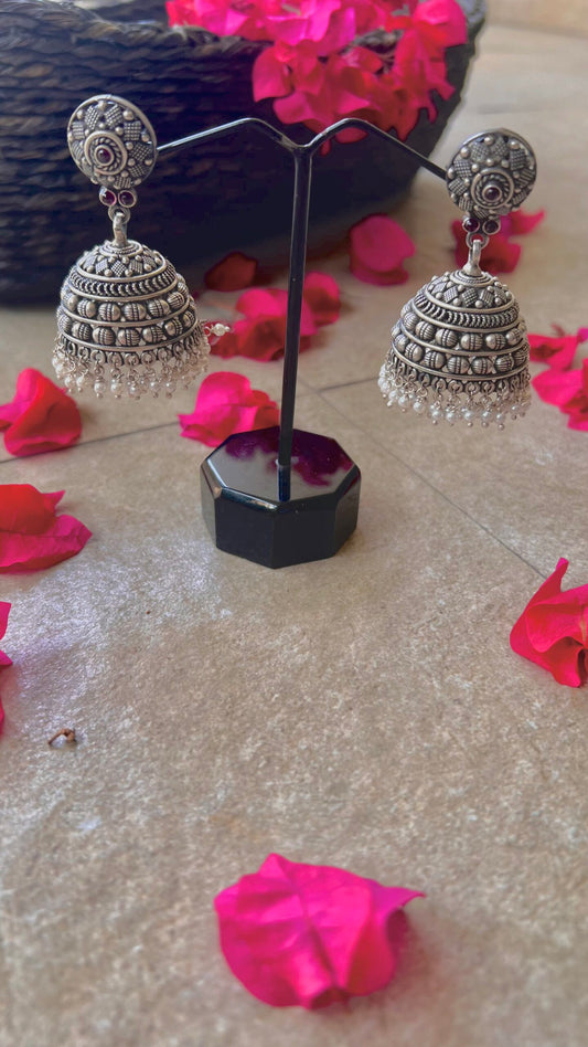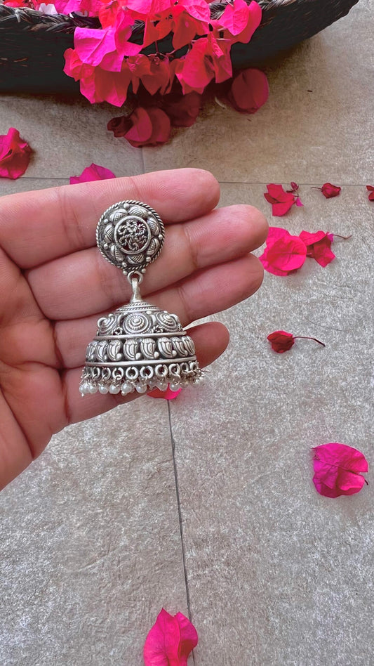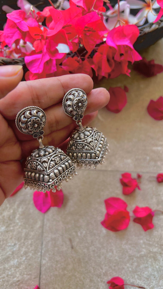 "Shubharambh" :Charulata: Timeless Elegance: South Indian Silver Jhumkas with Delicate Artistry