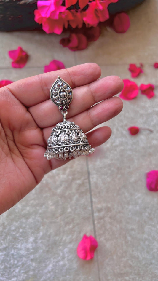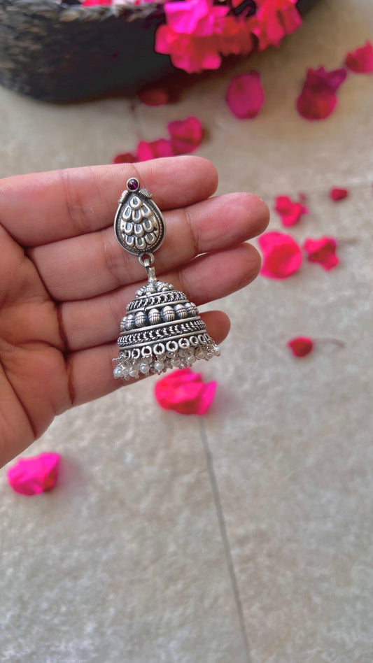 "Shubharambh" :Pankh: Elegance in Every Detail: Admire the Beauty of this Exquisite South Indian Silver Jhumka