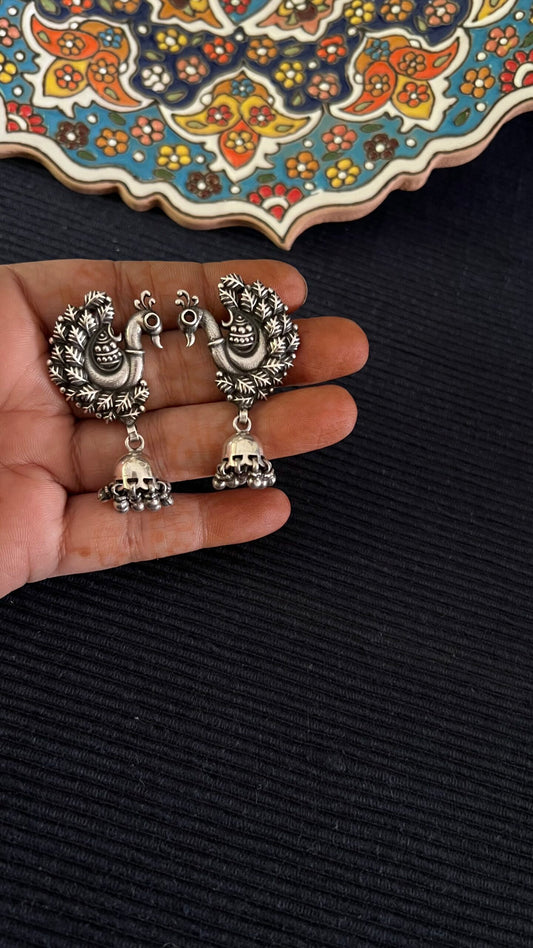 "PEACOCK Jhumka" : Dazzling in pure silver, these intricately crafted Peacock earrings are the epitome of versatility!